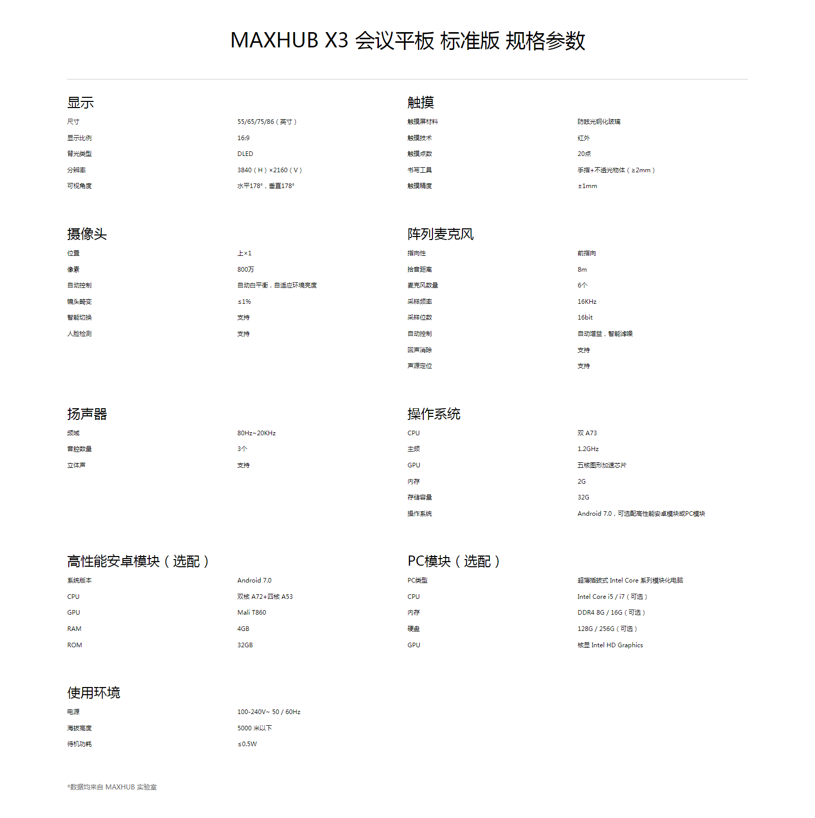 *8米拾音指在人正常说话,周边环境音为 40~50db 情况下,由 MAXHUB 实验室内部测试所得结果。